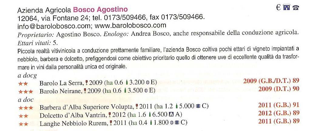 Barolo La Serra 2009 Barolo Neirane 2009 Barbera D'Alba Superiore Volupta 2011 Langhe Nebbiolo Rurem 2011 Dolcetto d'Alba Vantrin 2012