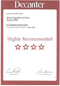 20.06.2011 www.decanter.com BOSCO AGOSTINO LA SERRA2006 HIGHLY RECOMMENDED hase been recommended in a decanter blind tasting. Decanter award.